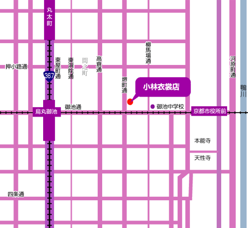 京都の日本舞踊貸衣裳・着付なら小林衣裳店へ。当店までのアクセスマップです。